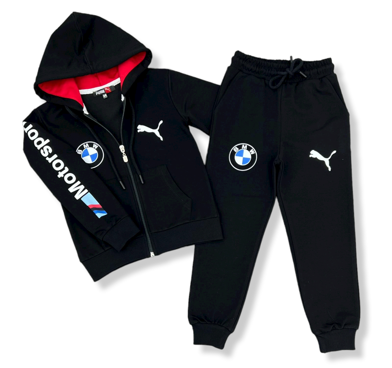Комплект от черен суитчер и долнище с апликации.