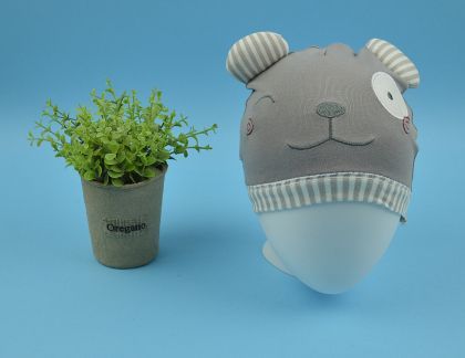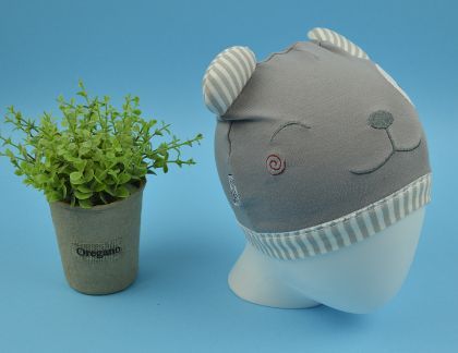 Тъмно бежав цвят шапка с бродерия на мече с декоративни ушички.