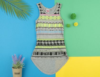 Светло сива рокля с фигурални елементи на цялата лицева част.