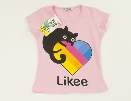 Розова тениска с апликация коте.
