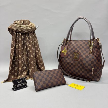 Комплект от кожена чанта /33*30см./, кожено портмоне /20*10см./ и двулицев шал /170*68см./
